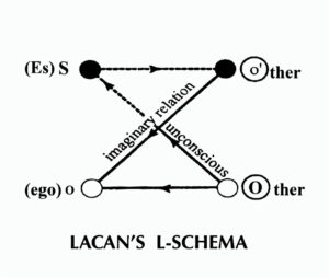در مقابل این ساختار سهنقطهای، سوژهٔ لکانی در قالب یک چهاربخشی ترسیم میشود. نمودار لکانی موسوم به «شِمای L» (لکان، ۱۹۷۷) چهار نقطه را در بر میگیرد: S ، O ، o وo´ .
